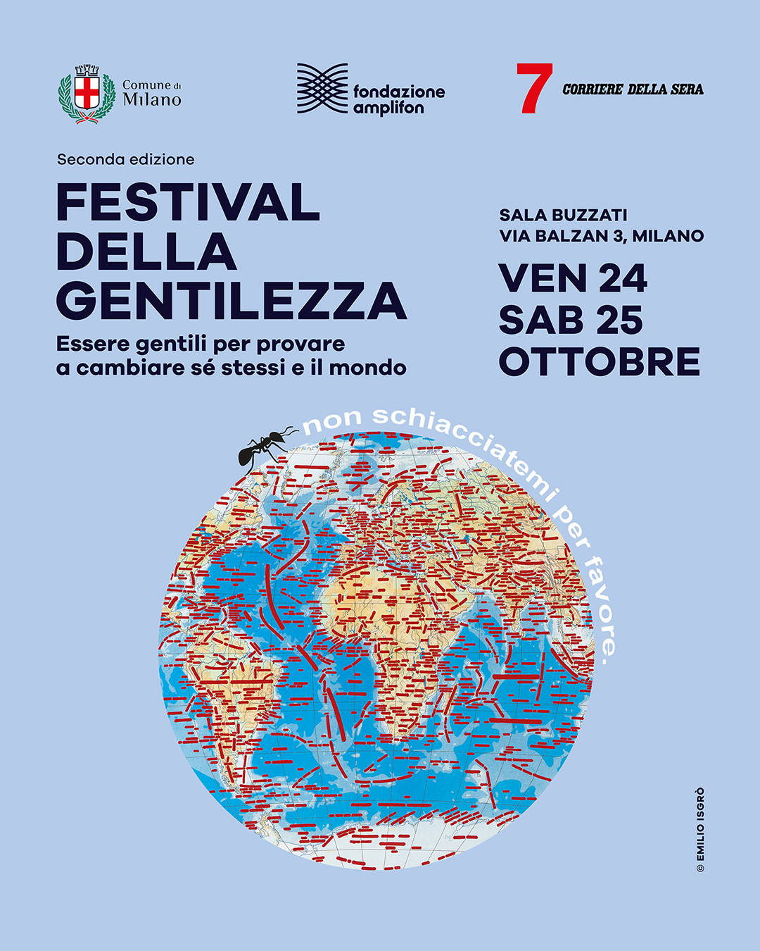 E quindi i prossimi 24 e 25 ottobre 2025 inaugureremo la seconda edizione del Festival della Gentilezza, a Milano, in Sala Buzzati (via Balzan 3), con 7, il Corriere della Sera e con il patrocinio del Comune di Milano.